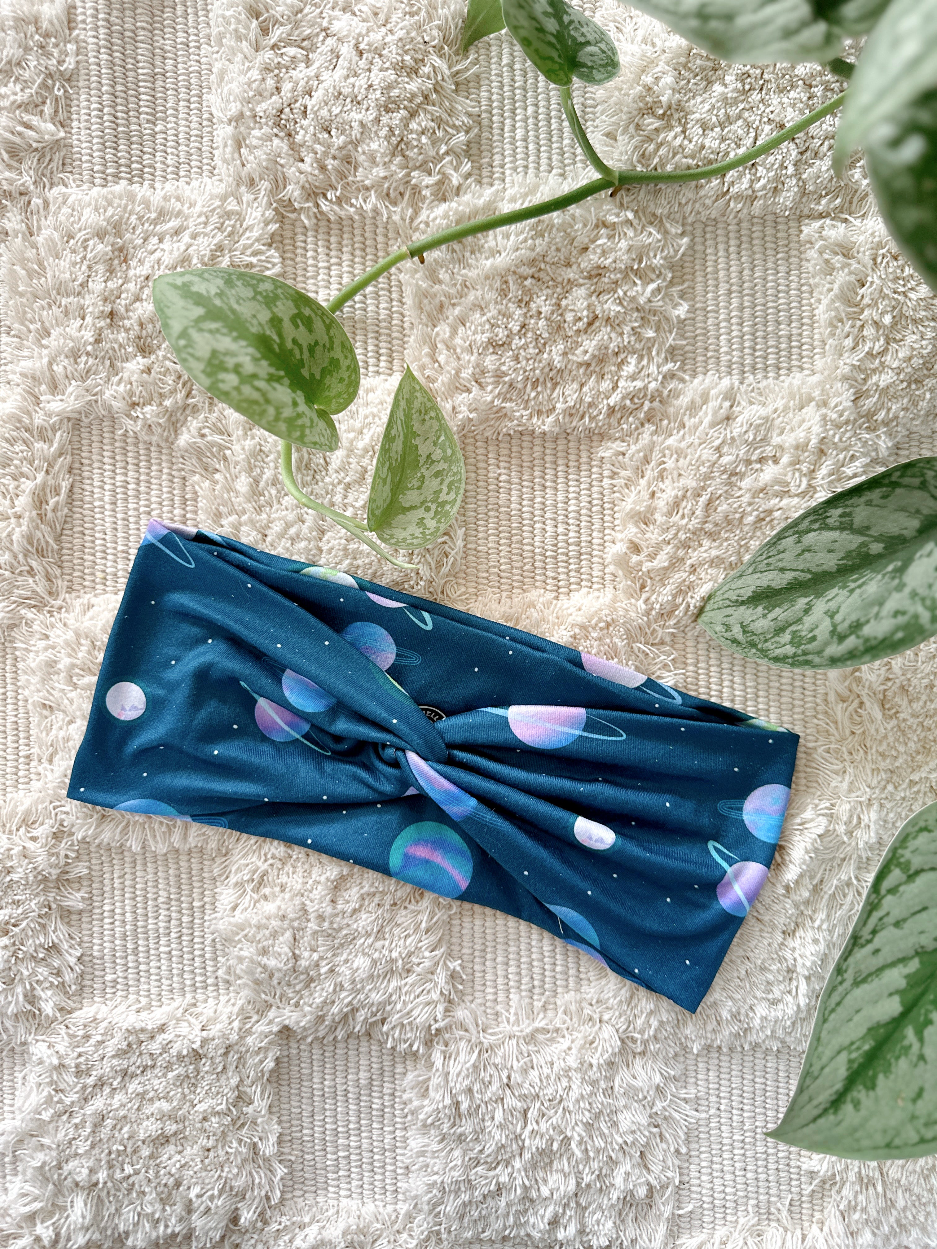 The Twistband™ is approximately 4" wide and features a permanent faux twist in the front. The Twistband™ is not tapered in the back which allows for more coverage for your baby hairs. You can wear the twist in the front or the back!