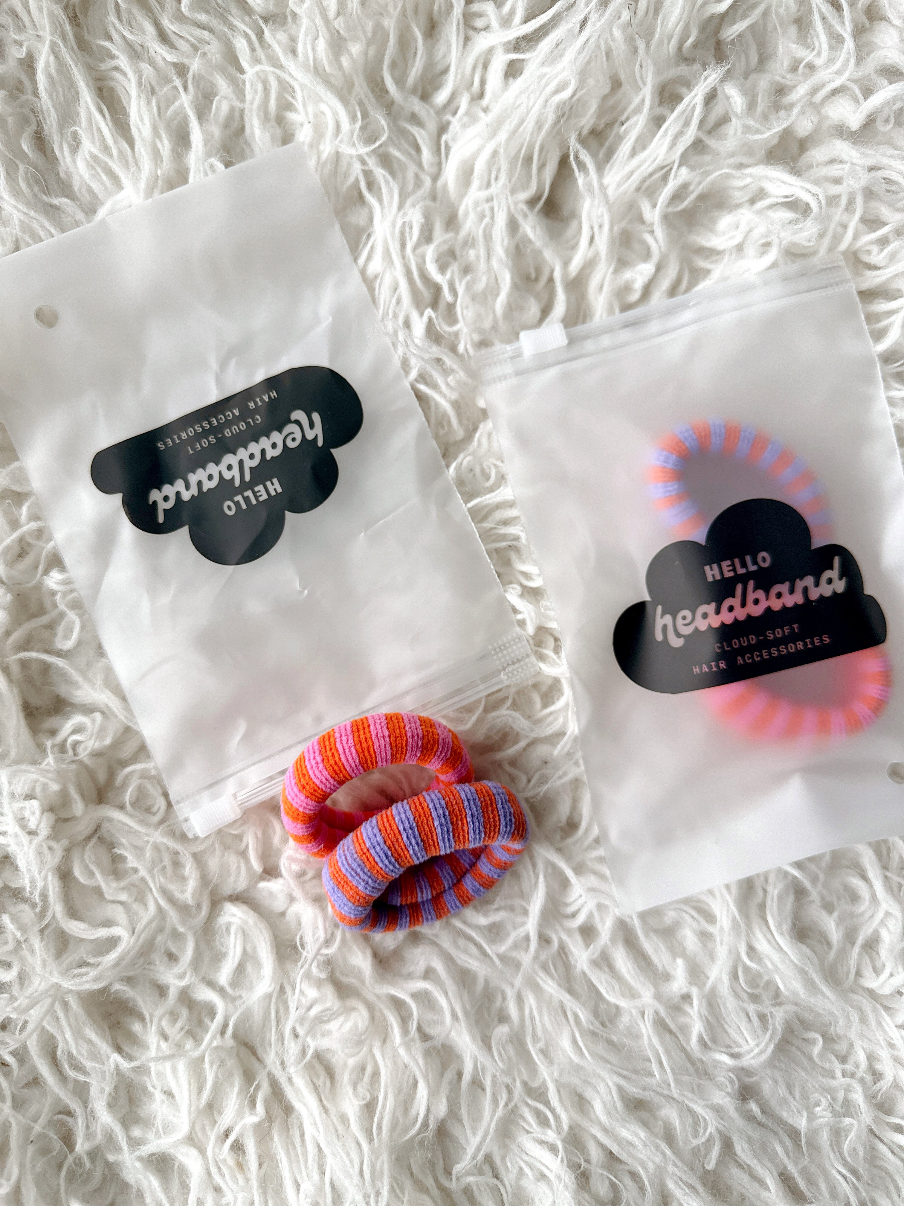 Seamless Hair Ties - Pink & Orange Stripe is backordered and will ship as soon as it is back in stock.