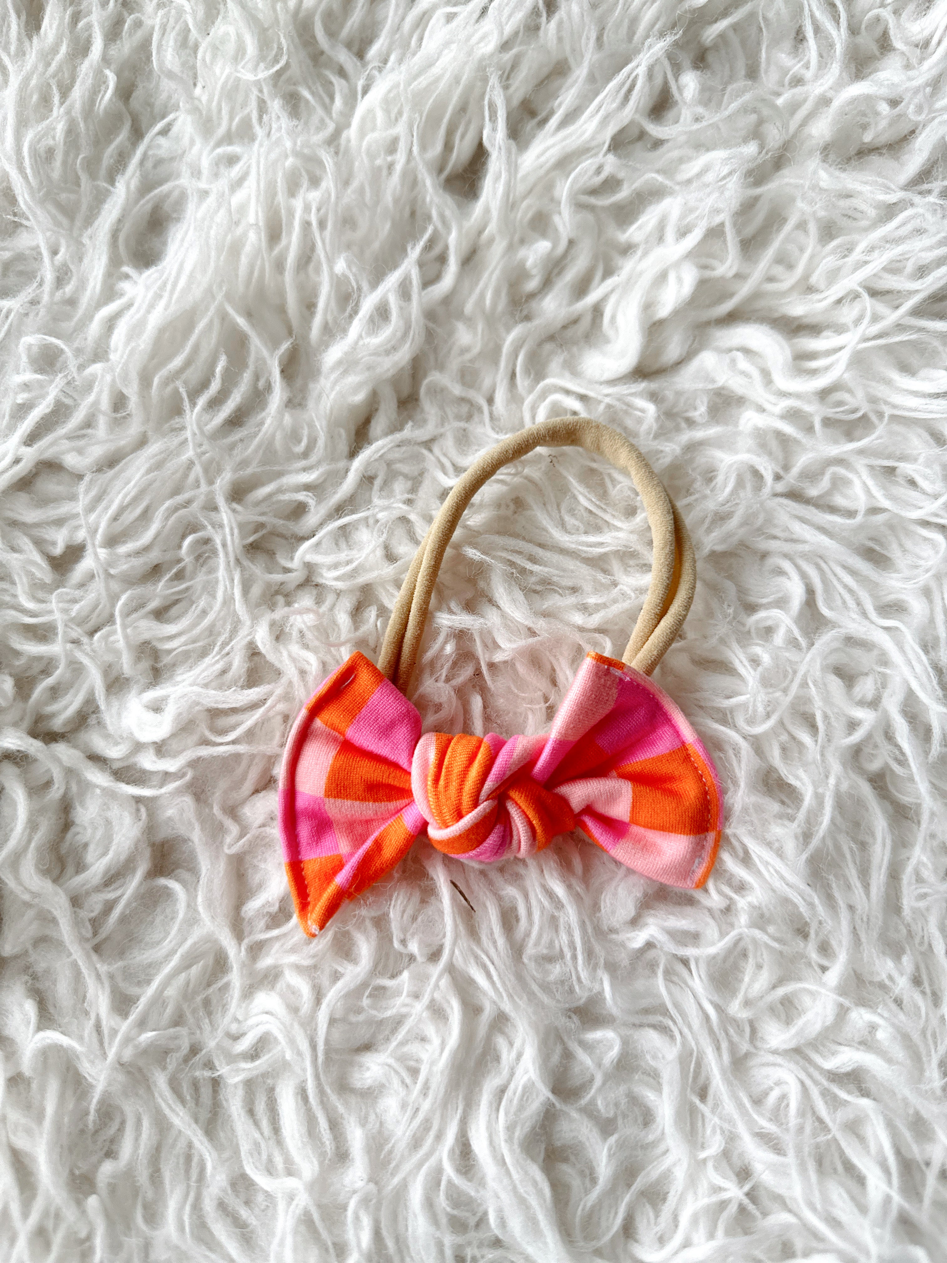 Nylon Headband - Pink & Orange Checker