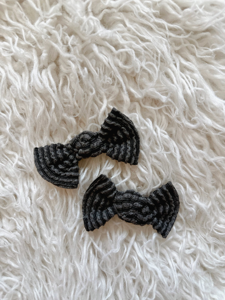 Textured Pigtail Clip Set - Wavy Ribbed Charcoal