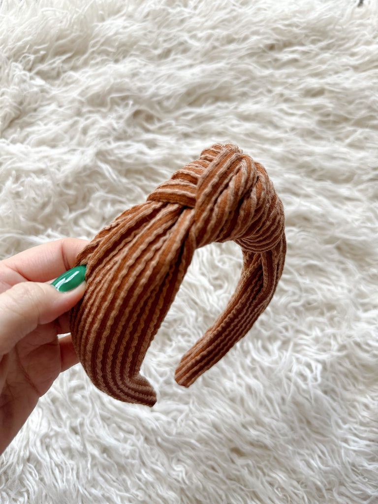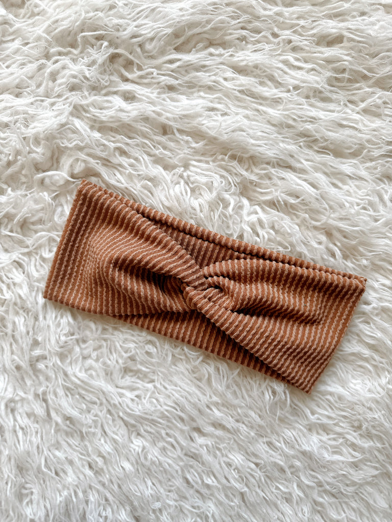 Textured Mini Tieband - Wavy Ribbed Caramel