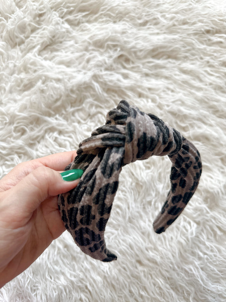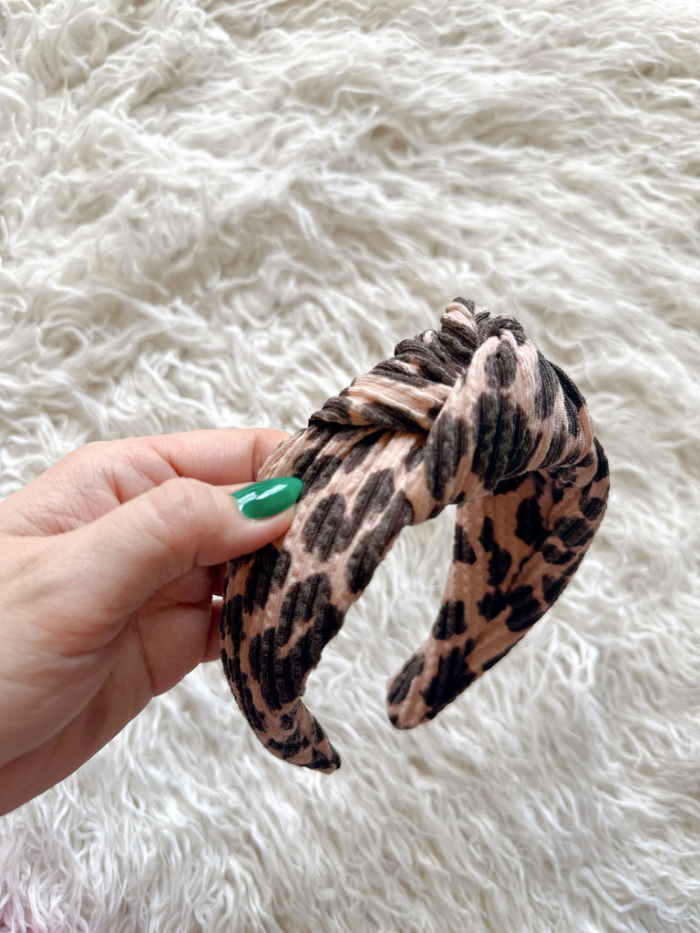 Textured Hard Headband - Wavy Ribbed Tan Leopard