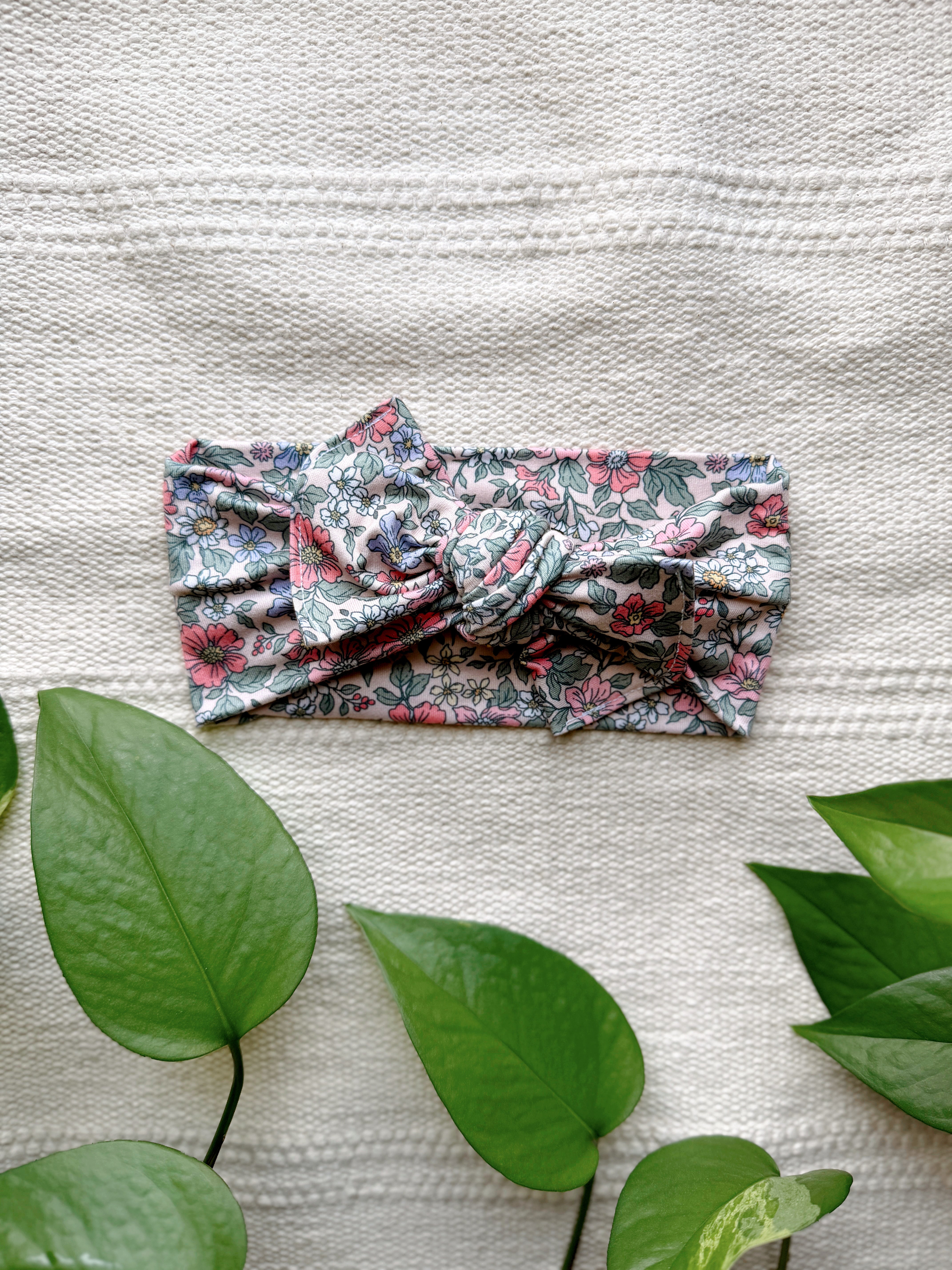 The Mini Tieband™ is approximately 3" wide and and can be untied and retied for the perfect fit. These are sized to fit newborn-toddler.
