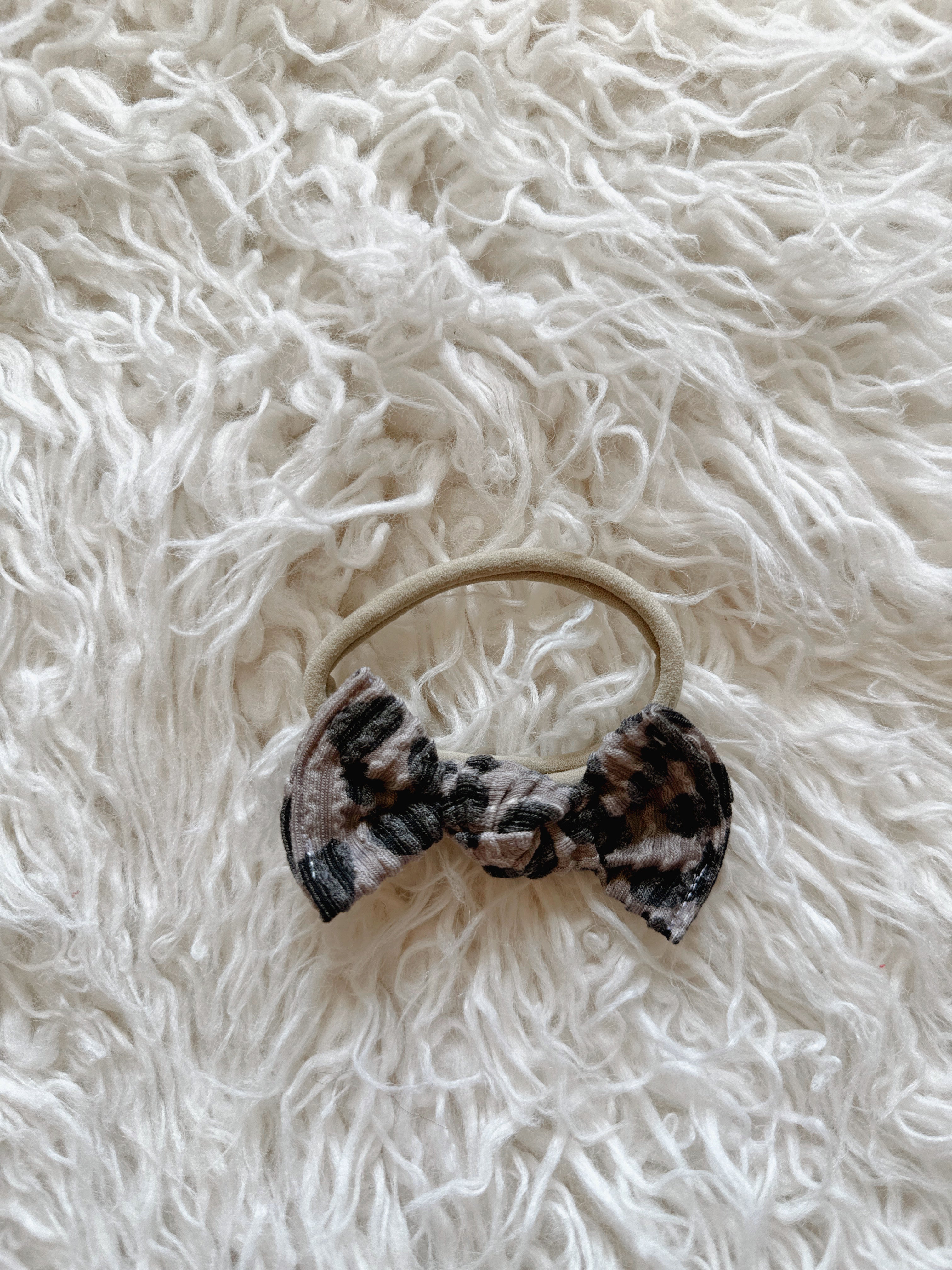 - 3” hand-tied bow made from soft, ribbed fabric