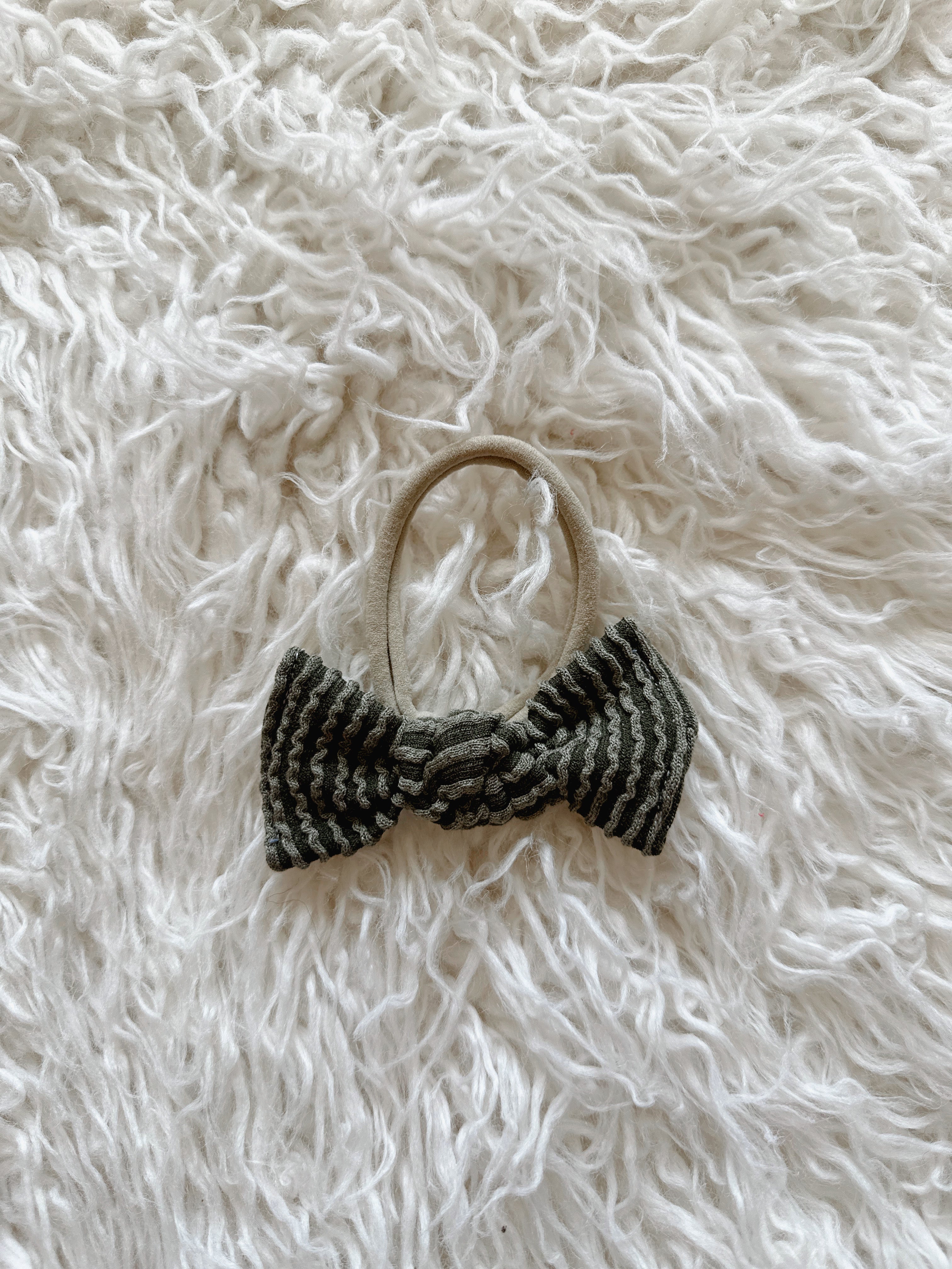 - 3” hand-tied bow made from soft, ribbed fabric