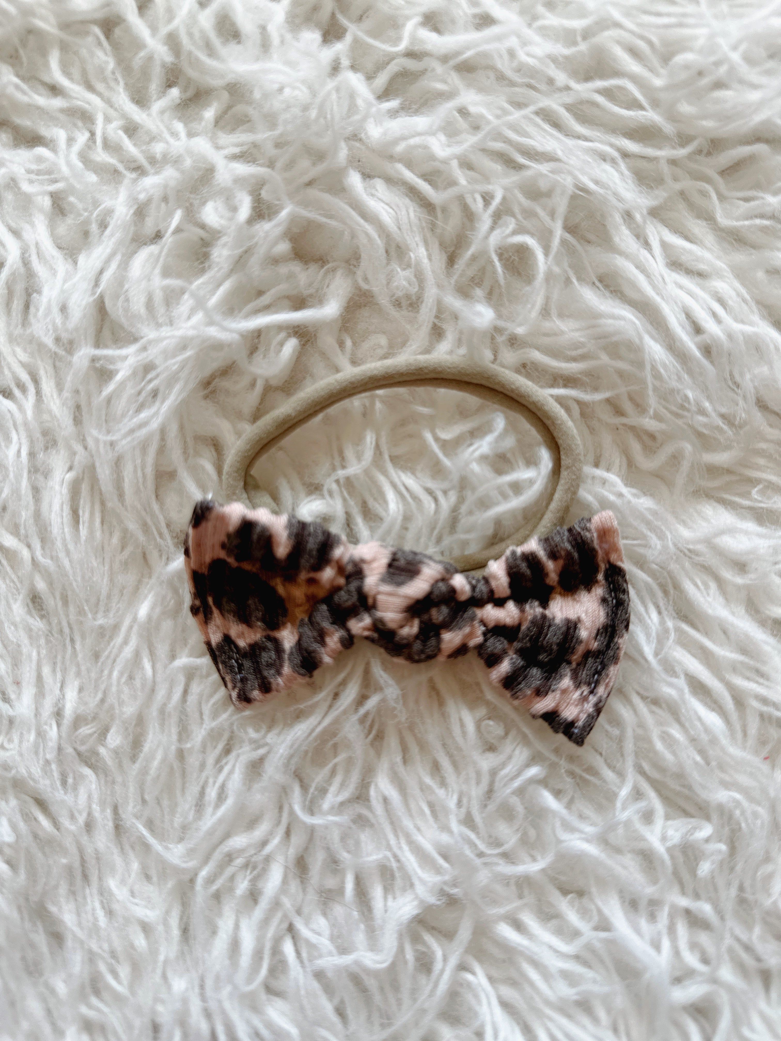 Our Nylon Bow Headbands feature a 3” hand-tied bow made from ribbed, textured knit fabric, attached to a super soft, nude nylon band. Designed to grow with your little one, the band is ultra-stretchy, lightweight, and gentle on delicate baby skin.