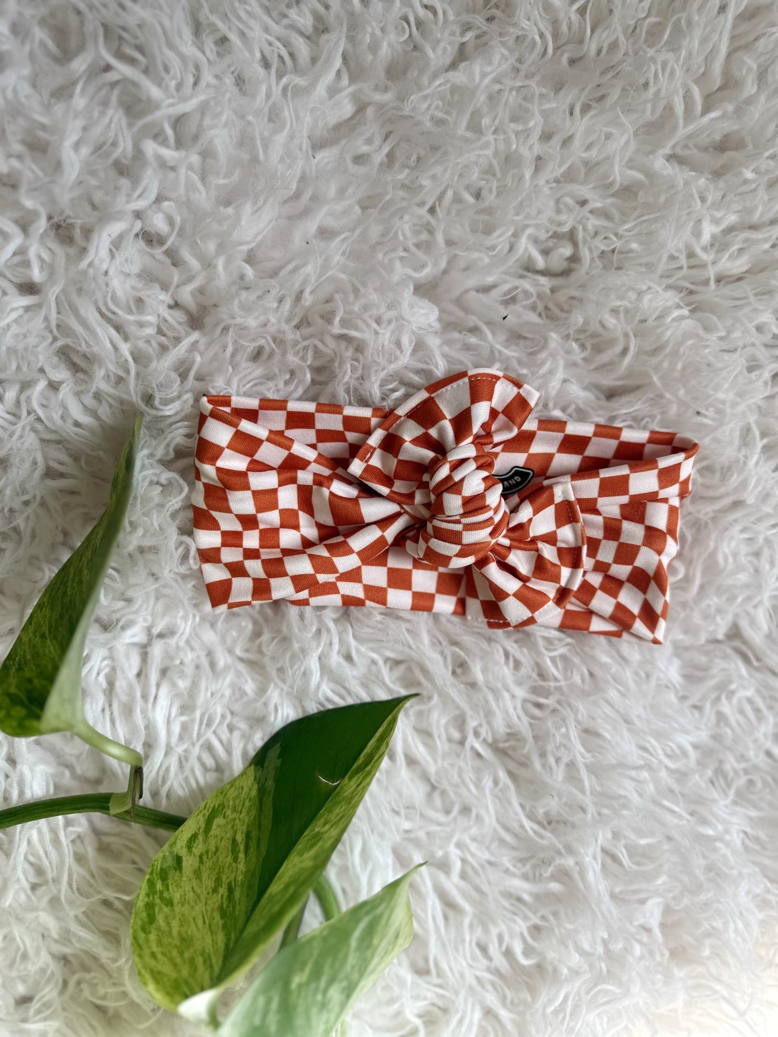 Mini Tieband - Cognac Wavy Checker
