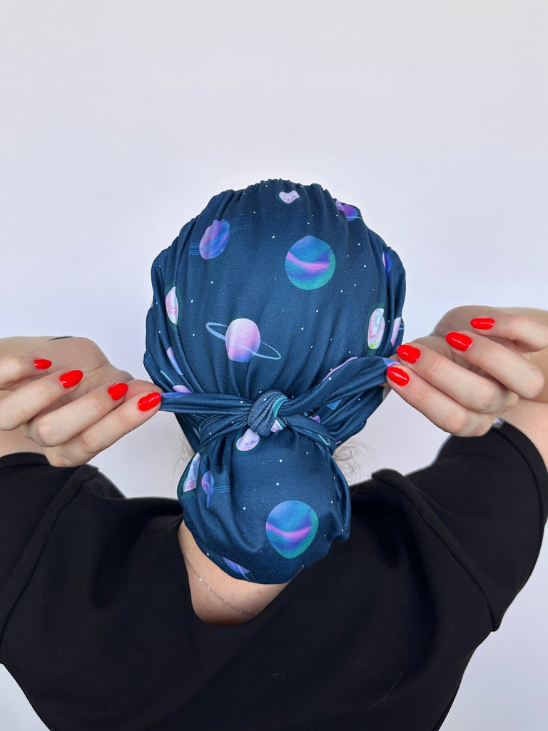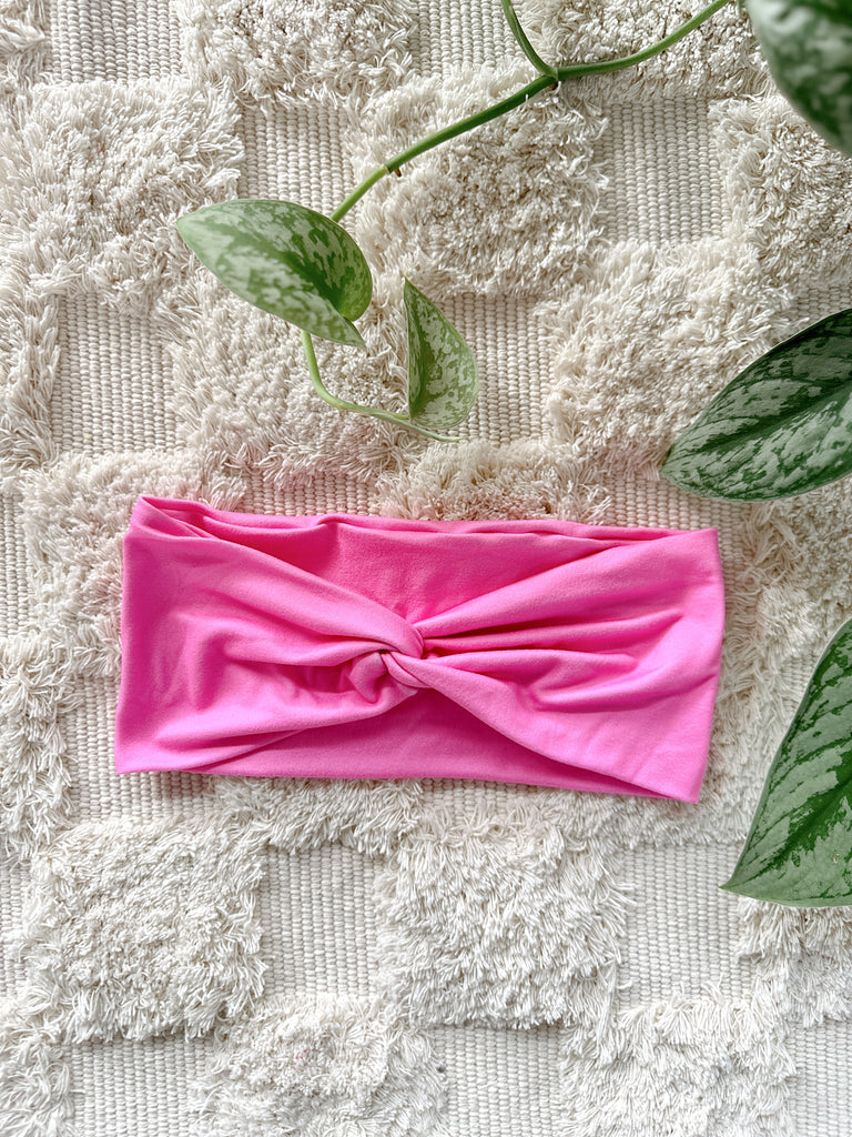 The Twistband™ is approximately 4" wide and features a permanent faux twist in the front. The Twistband™ is not tapered in the back which allows for more coverage for your baby hairs. You can wear the twist in the front or the back!